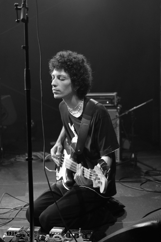 A 17h45, Lùlù (prononcé « Loulou ») est donc le premier groupe à jouer du week-end. Composé de membres de groupes déjà existant à Lyon et à Marseille (notamment Irnini Mons et AVIONS), le quintet nous livre une power pop ultra fraîche chantée en français et en italien, à base d’influences 70s et même de la pop italienne des années 60. Devant une vingtaine de personnes maximum, le groupe joue généreusement quasiment tout son premier album sorti au mois de juin dernier. Les loulous débutent le set avec des riffs dignes de génériques de sitcom, nous rendant nostalgiques. Coups bas nous parle de fausses amitiés et de nuits lyonnaises d’hiver à errer dans les rues désertes. Nous avons le droit bien évidemment à Sonic, Lyon, titre écrit en hommage à la meilleure péniche underground de Lyon (en grande difficulté financière liée à l’entretien de la coque), baignée d’une lumière rouge, berceau de découvertes musicales et fief de nombreux artistes lyonnais (et internationaux) faisant bien souvent parmi leurs premières armes sur la petite scène penchée du bateau.