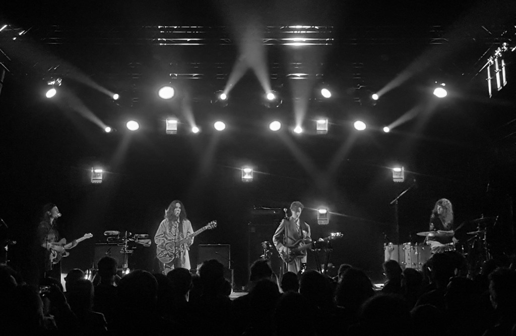 A 22h05, il est temps de retourner vers la scène à l’intérieur de l’Epicerie Moderne, pour assister au show de Walter Astral, un duo parisien de pop psychédélique avec des touches de techno et d’acid. Les deux compères sont très prolifiques, auteurs de trois EP entre 2022 et 2024, et d’un excellent premier album d’une heure, Eclipse, paru en janvier 2025. C’est un disque qui nous plonge dans un univers mystique peuplé de créatures étrangères et espiègles, emprunt d’un onirisme étrange. Le show de Walter Astral retranscrit parfaitement un monde qui rappelle celui d’Alice au Pays des Merveilles, à la fois enchanteur mais où la prudence est nécessaire. Ils nous livrent un show posant un cadre d’abord assez calme, avec des boucles de synthétiseurs cosmiques, pour nous emmener peu à peu vers un état de transe où chaque personne du public se met à danser librement, envoûtée par les notes orientales du banjo ou de la guitare électrique, et d’une techno aux basses de plus en plus énervées qui transforme la salle en dancefloor. Walter Astral n’hésite pas non plus à faire sortir les turbofées qui sont en nous, nous invitant à mettre nos chapeaux-étoiles, et aussi à nous prendre tous par les auriculaires afin de danser une gigue bretonne pleine de sourires. Tout le monde se prend au jeu, et après le dernier morceau du duo de druides, la plupart de la foule décide, satisfaite, qu’il est temps de rentrer à la maison après cette première journée de fête.
