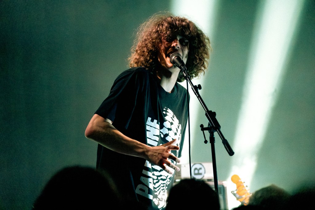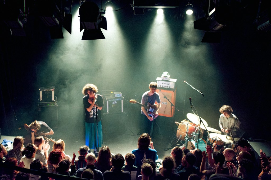 A ce stade, trois singles de l’album étaient sortis : Sore, Láska et A Strained Ocean. On sent, dans l’atmosphère de la salle ultra remplie, une tension joyeuse et impatiente grandir, avant et après la première partie de rock loufoque / pop naïve pleine de synthétiseurs de Technically not a bird. On sent que ce soir on va être transporté(e)s, mais on ne sait juste pas encore jusqu’à qu’elles profondeurs… Vers 22 heures, tous les instruments sont installés, côte à côte, sur le devant de la scène, la batterie toute proche du public à droite, les amplis juste derrière les musiciens qui arrivent, comme pour les obliger à rester sur le devant de la scène, créant plus de proximité et d’intimité avec le public.