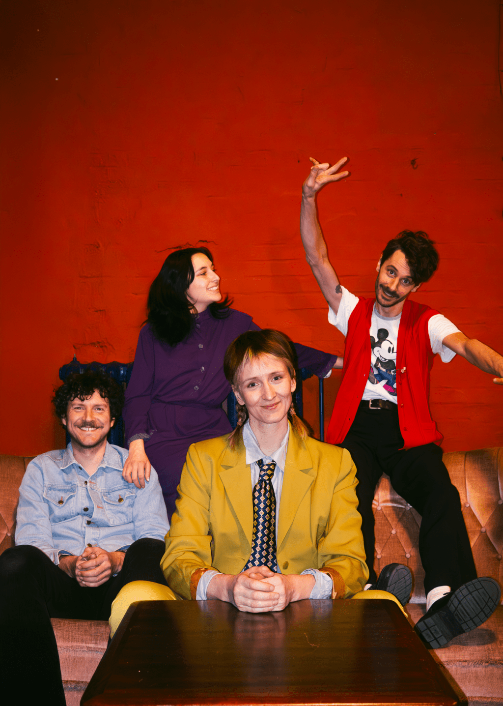 Mais d’abord, on attend, curieux, le premier groupe. Le nom d’Irnini Mons est inscrit sur un tissu, au milieu de comètes. Leur nom venant d’un mont de Vénus, cela fait sens. Les quatre comètes (Fanny Bouland à la batterie, Mathias Chirpaz à la basse, Sabrina Duval et Valentin Fayaud aux guitares) arrivent alors sur scène et lancent d’emblée T’as pas peur, morceau qui groove sacrément, avec ses relents post-punk et un chant chorale plein d’ironie sur ce qui est semble être le début d’un burn out. Un petit riff de guitare bien sympathique et rafraichissant démarre L’acteur, plein de punchlines, puis s’ensuit le gros riff gras accompagné d’une guitare dissonante et menaçante : c’est Montréal. Ce contraste entre gros son et chant chorale aigu aux paroles décalées (ici enfantines, sur des vacances dans la ville québécoise…) fait l’identité du quatuor. Musicalement, le mélange pop/punk/post-punk/chanson française réhaussé par des moments inattendus de ruptures rythmiques est ce qui interpelle le plus. Le public est réceptif : les têtes bougent, ça hurle par ci par là pour célébrer le groupe. Elis Police prend le contrepied du morceau précédent : une instru plus légère, qui rappelle un peu The Strokes, évoque sous un angle d’abord léger un sujet très sérieux : les violences policières. Sur scène, le groupe s’amuse, baigné de lumières clignotantes qui imitent les gyrophares d’une voiture de police. Ca groove, ça danse, ça chante en canon en parlant de high kick, de nasse et de lacrymo.